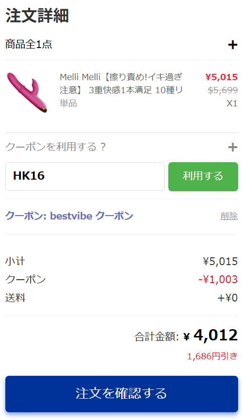 こちらのクーポンはBestvibeのすべての商品に適用されるため、当サイト経由ならクーポンを使ってお好きなアダルトグッズをお買い得価格で手に入ります。