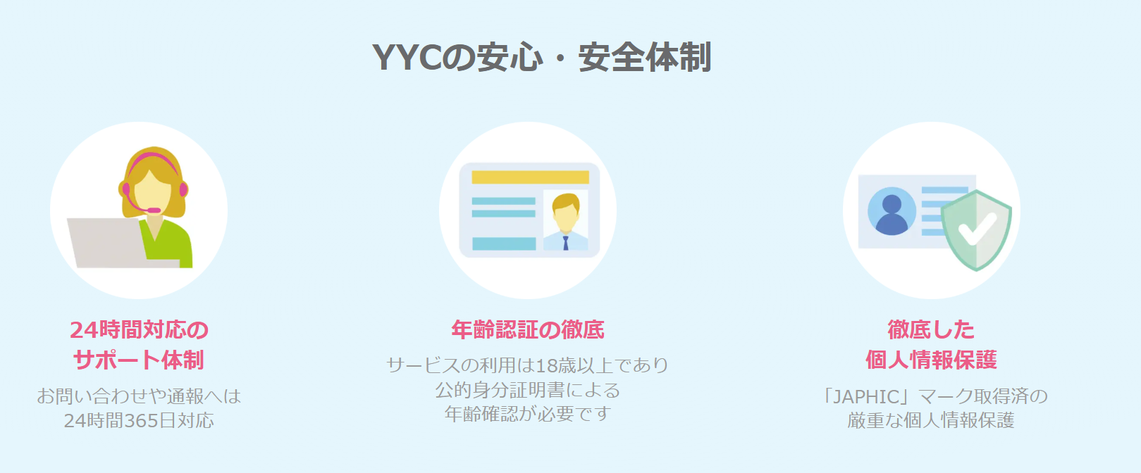 でも安心してください。YYCは22年以上の運営実績があり、厳重な監視体制のもとで安全に利用できるよう整えられています。